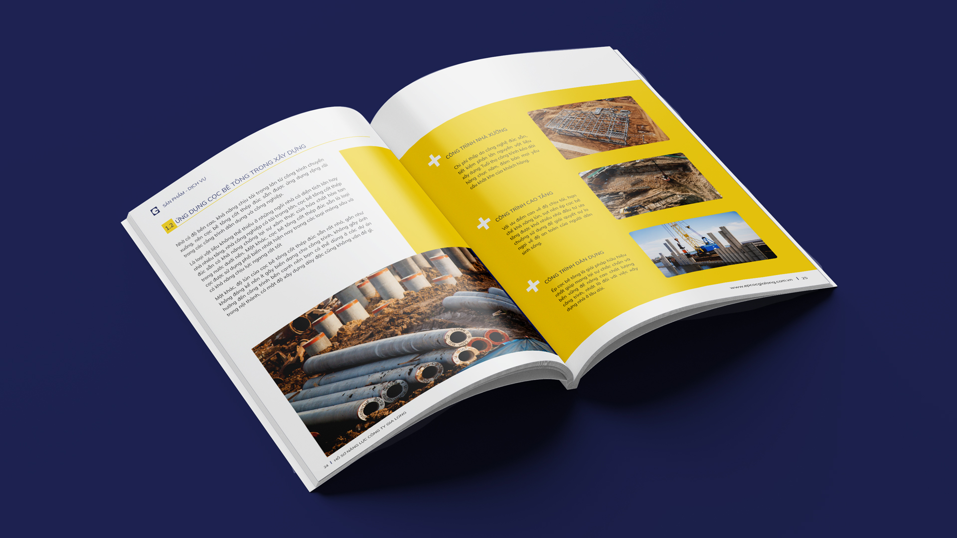 Công tác về thiết kế bố cục, dàn trang, đảm bảo sao cho lượng thông tin cụ thể về ép cọc bê tông được hiển thị mạch lạc, rõ ràng kèm hàng loạt sự xen kẽ của hình ảnh 3D, hình thật chất lượng cao và hình isometric do chính đội ngũ thiết kế Motila thực hiện.
